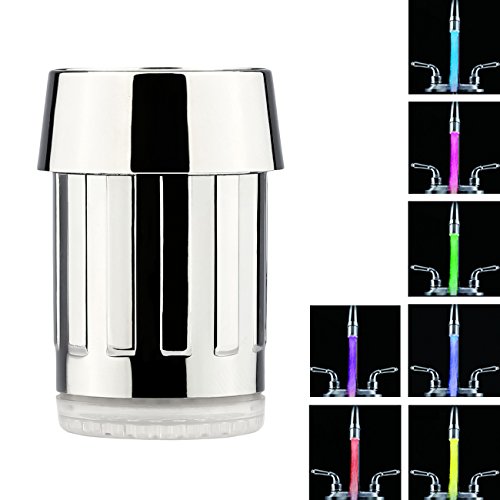 Tera LED 7 Colors Changing Water Flow Stream Powered Faucet This new type of LED color changing faucet can bring a magic and colorful washing space for your bathroom and kitchen. With 7 colors of LED light controlled and changed by the water stream temperature, you can enjoy a comfortable and funny washing time freely. Features: LED faucet for easy installation and usage in bathroom and kitchen. No need of extra power supply or battery, the water stream can provide power for LED color changing. With blue, green, red 3 main colors represent cold, warm and hot water. Mixed 7 colors of LED lights change automatically as the water stream temperature changes.Specification: Material: High quality ABS plastic, corrosion resistance, durable. LED Power Source: Water flow. Installation Type: Wall Mounted. External thread diameter: 2.2cm/0.87". Dimension: approx. 35 x 24 x 24 mm/1.4x0.9x0.9". Weight: approx.23g. 100% brand new. Suitable for: It fits for installing on most taps in the bathroom or kitchen and allows for using even turning off the light in the bathroom or kitchen. It also can be sent as a gift for birthday or Christmas. Package Includes: 1 x LED Color Changing Faucet 1 x Original Packing Read more details..