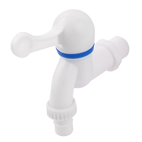 White plastic quarter turn water faucet with thread head.Easy to operate and install, widely used in washing machine, garden, kitchen, bathroom or other places.Great accessory for your life. Read more details..
